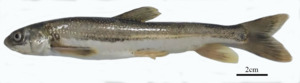D. maculatus is cylindrical anteriorly and slightly flattened posteriorly. Head obtusely conical. Anastomosis prominent. Mouth inferior, transverse or arcuate; mandibles with acute angular margins; right and left lobes of lower lip narrow, with granular surfaces; postlabial sulcus interrupted. Whiskers 1 pair, stout, shorter than or equal to eye diameter. Eyes equal in size, laterally superior. Pharyngeal teeth columnar, apically pointed, hooked. Hypopharyngeal bones narrow and long. Thorax and abdomen naked and scale-free; gluteal scales and lateral line scales larger; lateral body scales arranged above and below lateral line in imbricate or very sparse. Lateral line complete, laterally median (Figure 2, Figure 3). Dorsal fin pattern Ⅱ, 8, anal fin pattern Ⅱ, 5, pectoral fin pattern Ⅰ, 7~8, ventral fin pattern Ⅰ, 7~8;