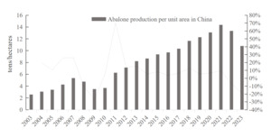 The first stage, from 2005 to 2011, was characterized by rapid expansion. Significant capital investment and the adoption of advanced aquaculture technologies during this period drove an annual growth rate exceeding 17%, with a peak of 35.38% in 2011. Abalone production increased from 17,700 tons in 2005 to 76,800 tons, achieving an average annual growth rate of 27.71%.