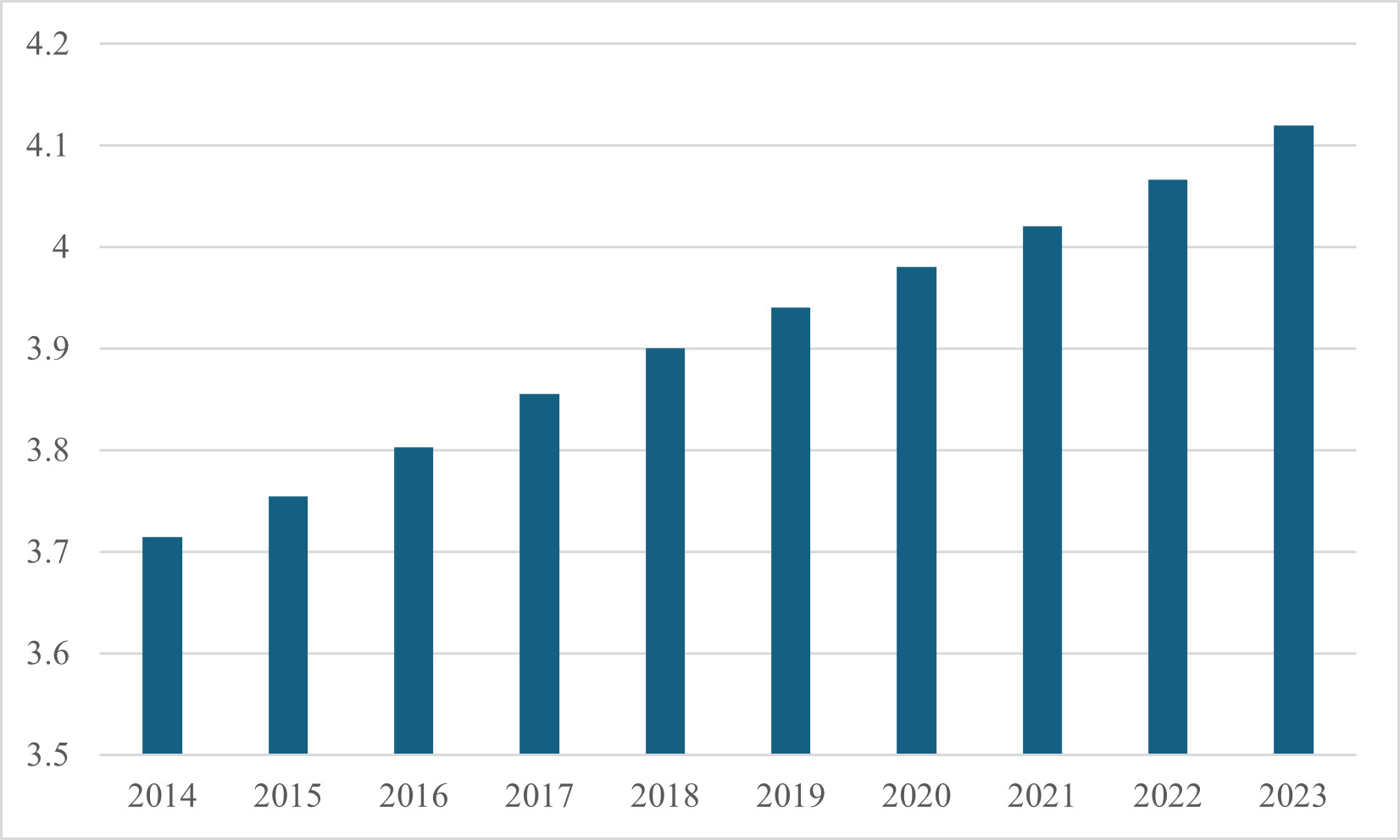 Financial institutions typically classify the aquaculture industry as a high-risk sector when evaluating aquaculture projects, with risk factors including disease outbreaks, natural disasters, and market price fluctuations during the aquaculture process. As a result, aquaculture projects often face challenges such as high borrowing costs or limited access to long-term credit during the financing process. This study adopts the research method proposed by Mu and Liu (2023), selecting the SA index as a proxy variable for financing constraints. To facilitate comparison, we have processed the data using absolute values. As shown in Figure 3, this illustrates the average financing constraints faced by listed fisheries companies in China from 2014 to 2023. The figure indicates that the index shows an overall upward trend, reflecting the increasing pressure faced by fisheries companies during the financing process. A higher SA index implies stricter financing constraints, which will limit project funding sources and hinder project scale expansion and sustainable development.