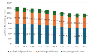 As the automation level of the aquaculture industry continues to improve and biosafety standards become increasingly stringent, the demand for technical talent is growing more urgent. However, traditional non-technical labor can no longer meet the industry’s development needs, leading to an imbalance in the supply of rural labor. As shown in Figure 4, although the total number of people engaged in aquaculture-related industries fluctuated between 2014 and 2023, the number of professional personnel has generally been declining. Additionally, the structural distribution of professional staff, part-time staff, and temporary staff may not fully align with the industry’s demand for technical talent. The application of automated equipment requires professional technicians for operation and maintenance, while the enhancement of biosecurity standards demands personnel with relevant professional knowledge and skills. However, the rural labor force generally lacks systematic professional training, making it difficult to undertake these technical tasks. This results in challenges for enterprises in recruiting suitable talent, thereby impacting the normal operations and development of projects.