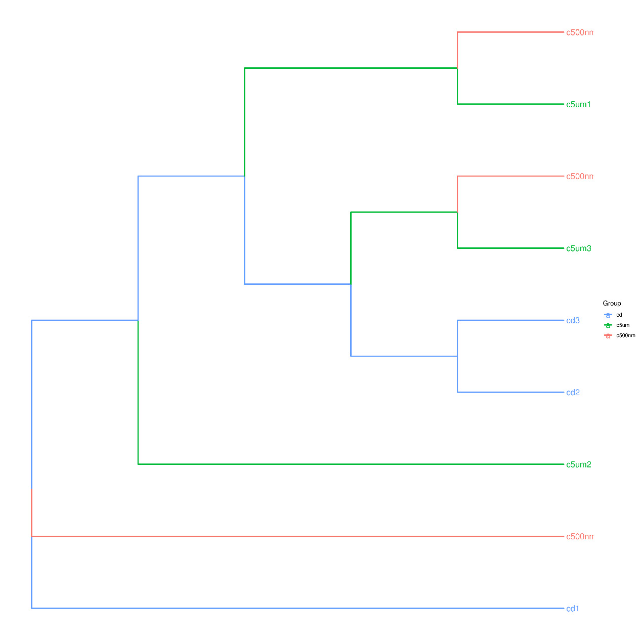 The top 15 genus-level microorganisms were most prevalent in each treatment group (Figure 10). Ruegeria, Nautella, Roseovarius, and Leisingera were the top four prevalent genera among the samples in the cd groups. Muribaculaceae, Acinetobacter, Vibrio, Bacteroides, Methylophilus, Azosprillum, Escherichia-Shigella, and Methylobacillus were the most prevalent genera in the samples from cd groups c5m. Ralstonia was the most prevalent genus in the cd groups c500nm samples. Based on the relative abundances of OTUs, the weighted UniFrac distances of all nine samples within the four treatment groups were determined. Utilizing the weighted UniFrac distance, we conducted principal coordinate analysis (PCoA) (Figure 11). All of the samples, including all groups, did not cluster properly and were not arranged along the chart’s first main component (PC1). They accounted for 73.58% of the total weighted PCoA.A sample clustering tree was created using the unweighted pair group technique with arithmetic mean (UPGMA) to examine further the similarities between various samples and groups (Figure 12). It was clear that there was no visible clustering of the groups or samples into a single branch, which was in line with the PCoA analysis. The variations in bacterial communities across the four groups were then further evaluated using an analysis of molecular variance (AMOVA). The cd and c5µm groups of communities in Ralstonia, Vibrio, Bacteroides, Methylophilus, Methylobacillus, Methylovorus, Demequina, Pseudorhodoferax, and Comamonas showed distinct characteristics. There were clear variances between the cd and c500nm groups of communities in Ralstonia, Methylophilus, Methylovorus, Demequina, Pseudorhodoferax, Comamonas, and Bradyrhizobium. The cd and c5µm groups of communities in Ralstonia, Vibrio, Bacteroides, Methylophilus, Methylobacillus, Methylovorus Demequina, Pseudorhodoferax, and Comamonas showed distinct characteristics. There were clear variances between the cd and c500nm groups of communities in Ralstonia, Methylophilus, Methylovorus, Demequina, Pseudorhodoferax, Comamonas, and Bradyrhizobium. Significant differences existed between the c5 µm and c500nm groups of communities in Vibrio, Bacteroides, Methylophilus, Pseudorhodoferax, and Bradyrhizobium. (Figure 13). All three findings demonstrated that the microbial community structure of the cuttlefish fertilized eggs is significantly impacted by variations in MPs size.